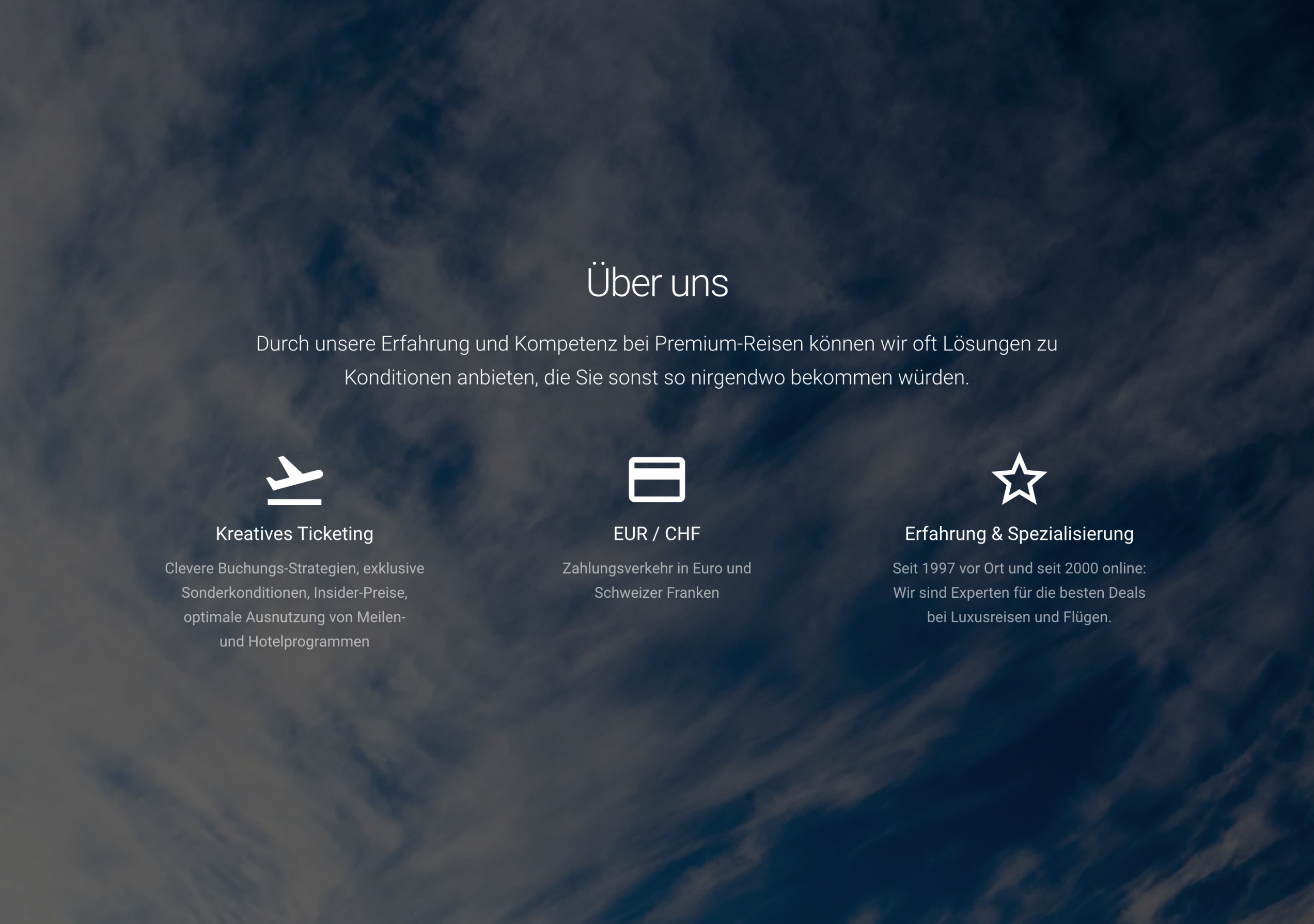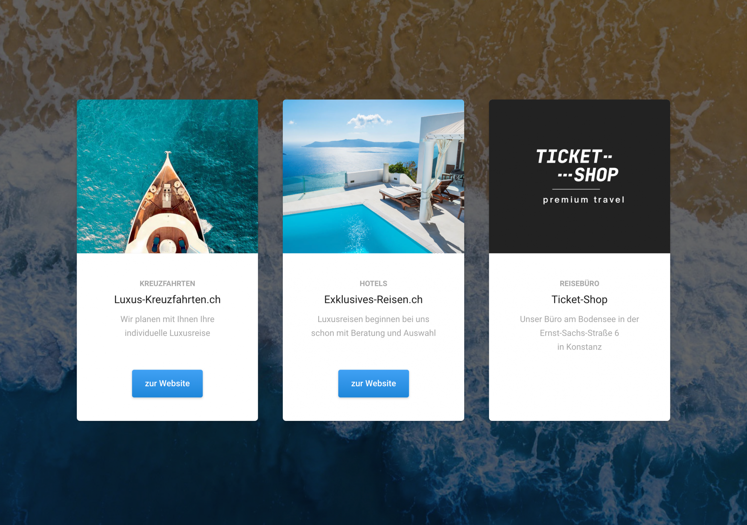 The travel agency Ticket-Shop was one of the first travel agencies on the Internet and has been active there with a total of six brands for various travel categories (businessclassflug.com, firstclassflug.com, vornesitzen.ch, luxus-kreuzfahrten.ch, exklusives-reisen.ch). As part of an updated strategic realignment, the original brand of the travel agency "Ticket-Shop" will now become an umbrella brand. Subsequently, the brands for luxury travel will also be strategically realigned. In order to meet these new requirements and adequately represent the umbrella brand for the company, which specializes in luxury travel as well as business and first-class flights, the old website has been completely replaced by a new website.