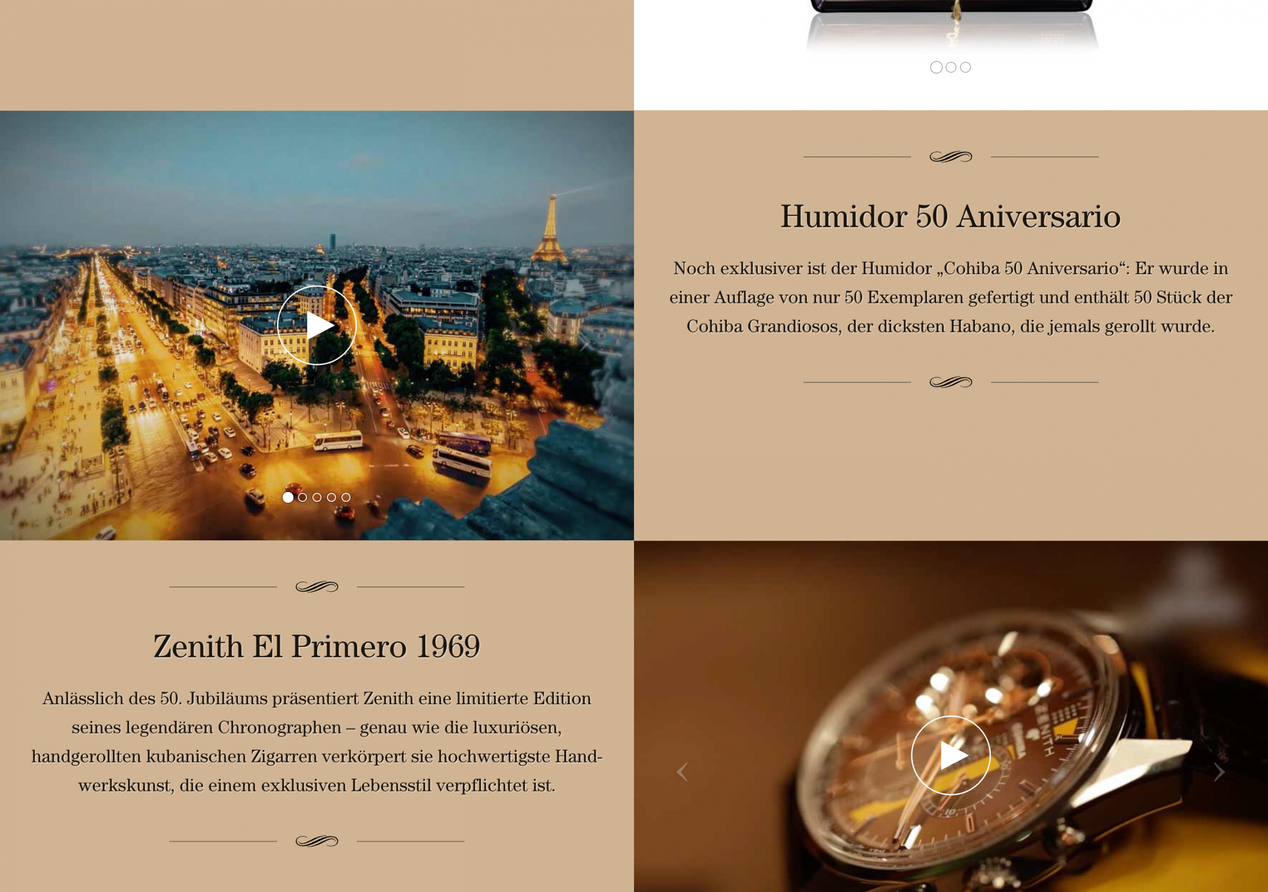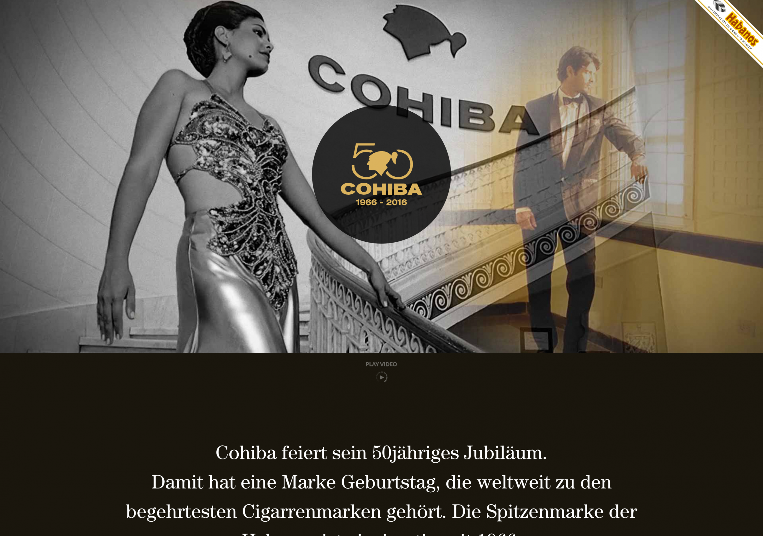 Cohiba is the world's best-known Habanos cigar brand and a byword for indulgence and an exclusive lifestyle. To mark its 50th anniversary, we were asked to design and implement the corresponding landing page. The aim was to create an appropriate brand presence for the Cohiba anniversary that does justice to this special brand in terms of content, design and technology and further reinforces its positioning as a premium/luxury product.