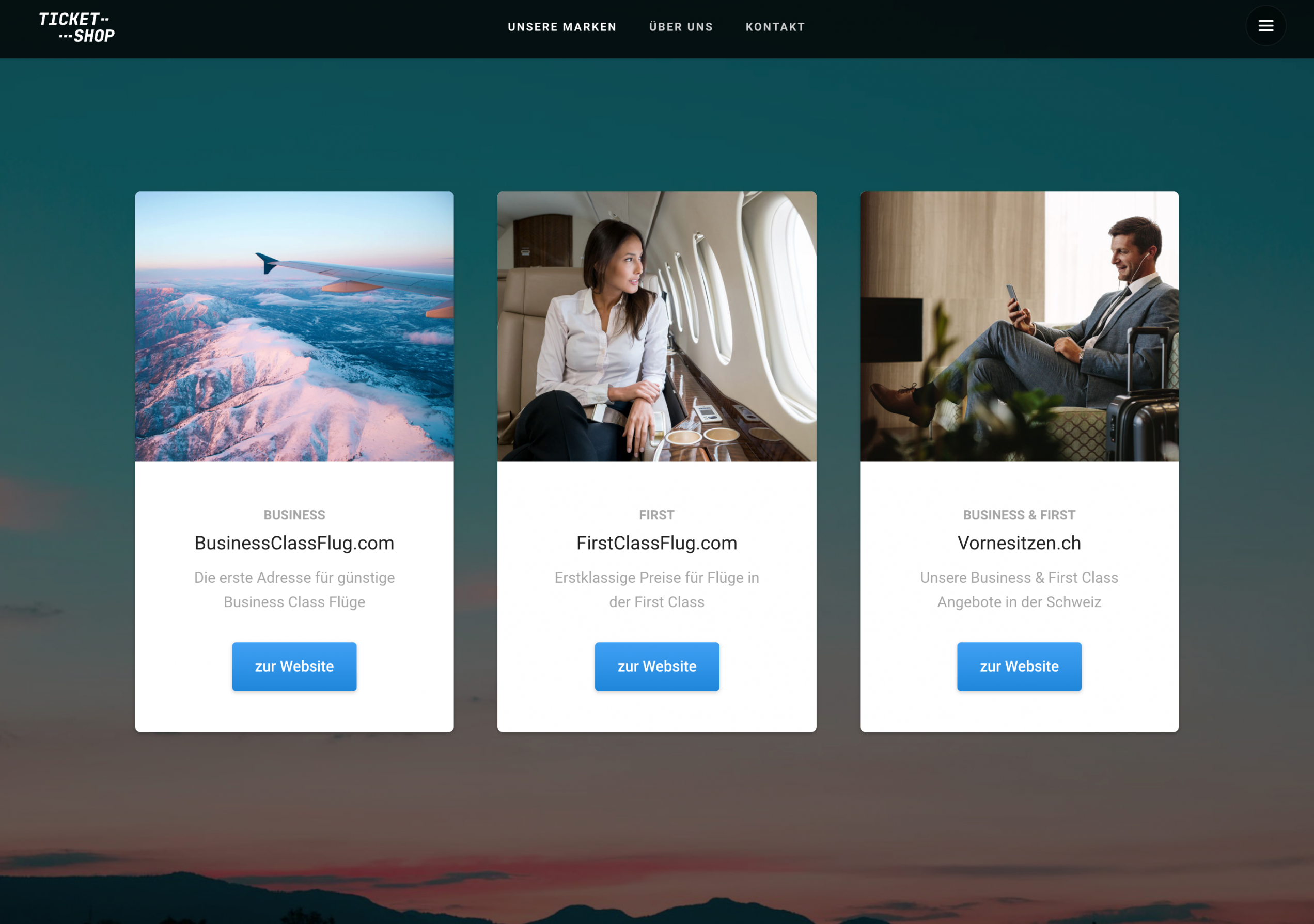 The travel agency Ticket-Shop was one of the first travel agencies on the Internet and has been active there with a total of six brands for various travel categories (businessclassflug.com, firstclassflug.com, vornesitzen.ch, luxus-kreuzfahrten.ch, exklusives-reisen.ch). As part of an updated strategic realignment, the original brand of the travel agency "Ticket-Shop" will now become an umbrella brand. Subsequently, the brands for luxury travel will also be strategically realigned. In order to meet these new requirements and adequately represent the umbrella brand for the company, which specializes in luxury travel as well as business and first-class flights, the old website has been completely replaced by a new website.